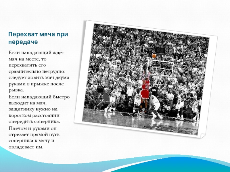 Слайд 19Перехват мяча при передаче