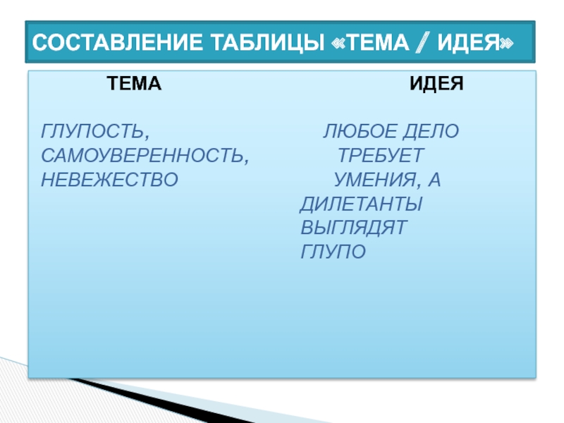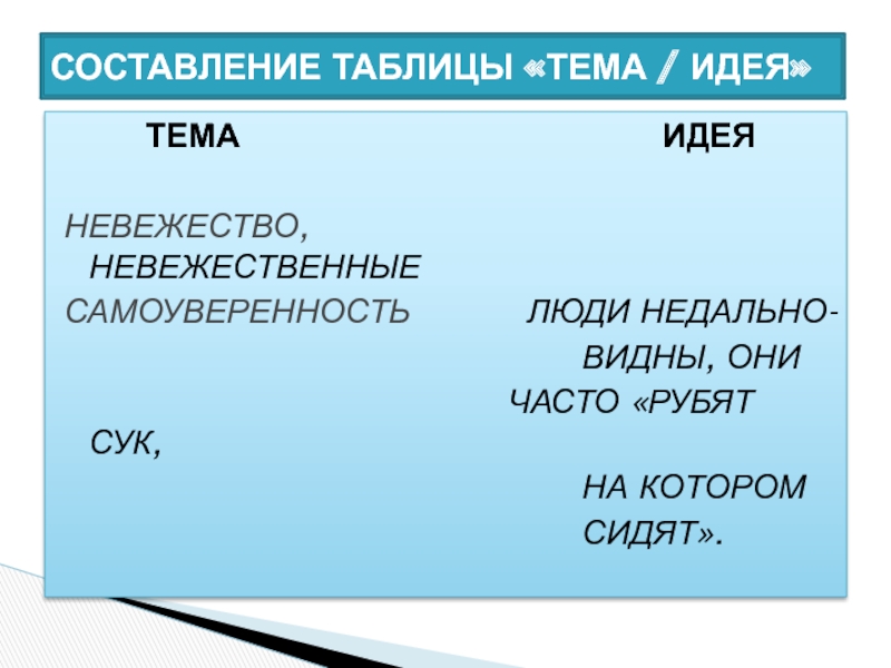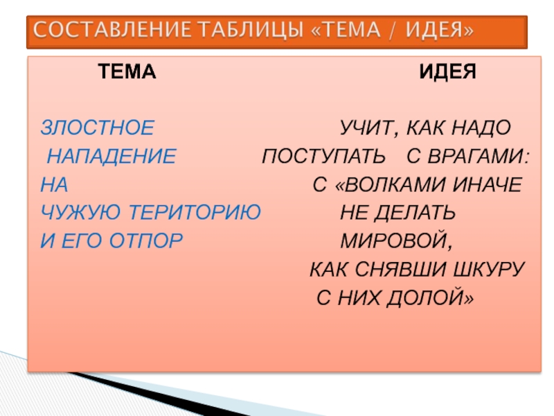 СОСТАВЛЕНИЕ ТАБЛИЦЫ «ТЕМА / ИДЕЯ»