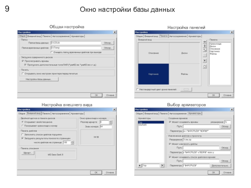 Слайд 9Окно настройки базы данных