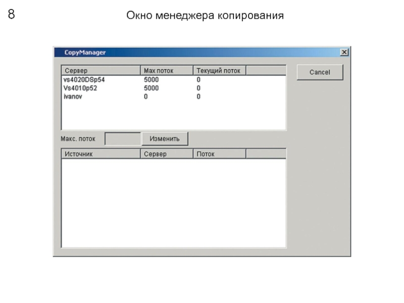 Слайд 8Окно менеджера копирования