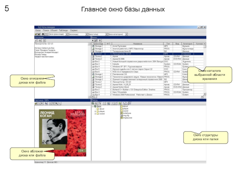 Слайд 5Главное окно базы данных
