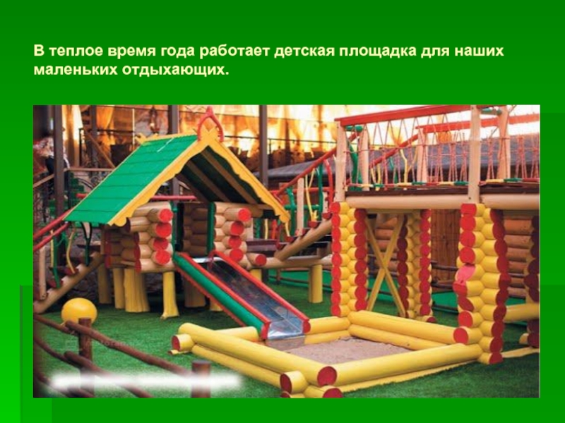 Слайд 17В теплое время года работает детская площадка для наших маленьких отдыхающих.