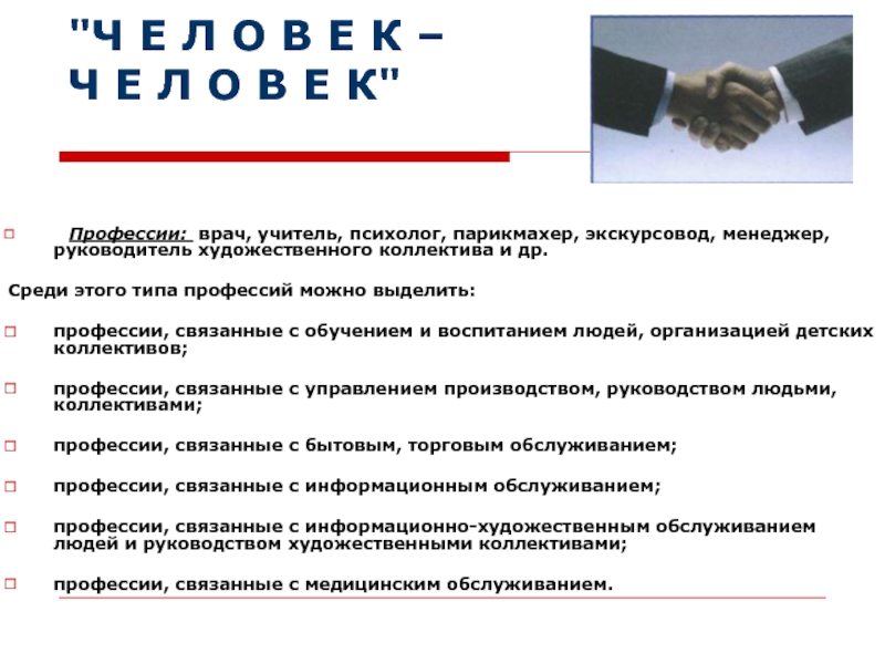 Профессии: врач, учитель, психолог, парикмахер, экскурсовод, менеджер, руководитель художественного коллектива и др.