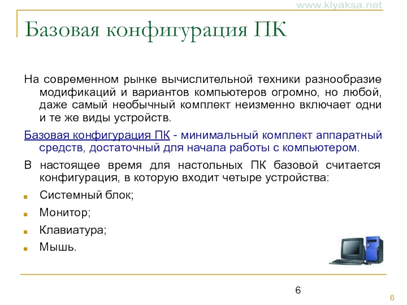 Слайд 6Базовая конфигурация ПК