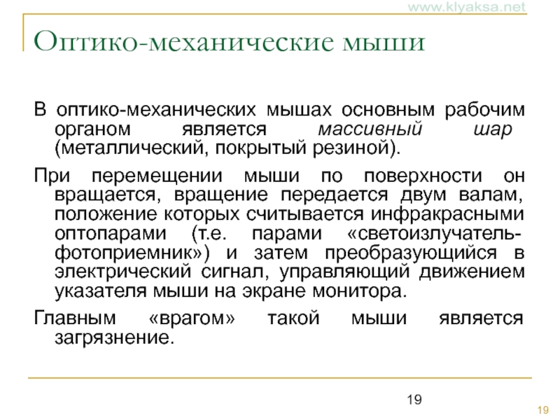 Слайд 19Оптико-механические мыши