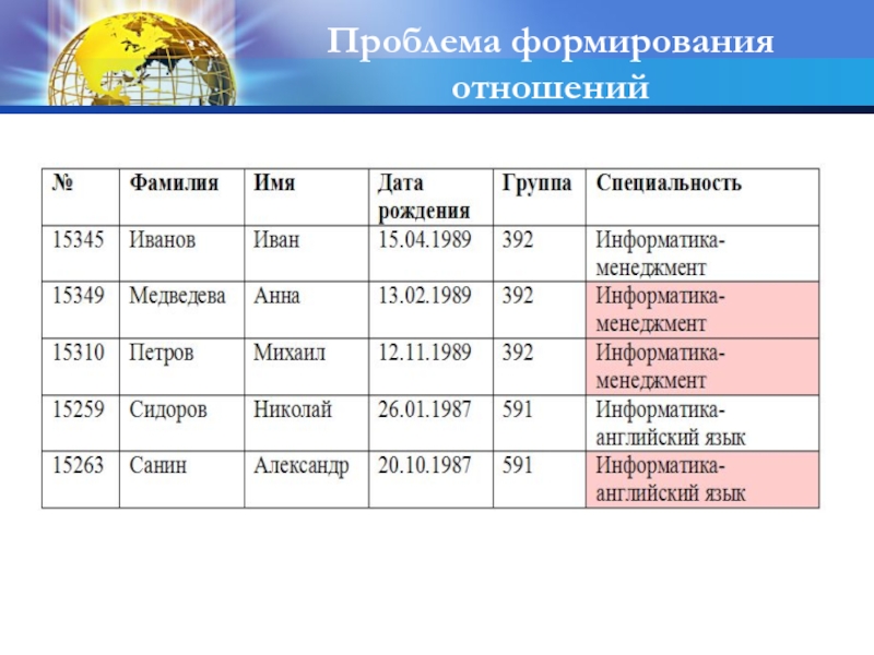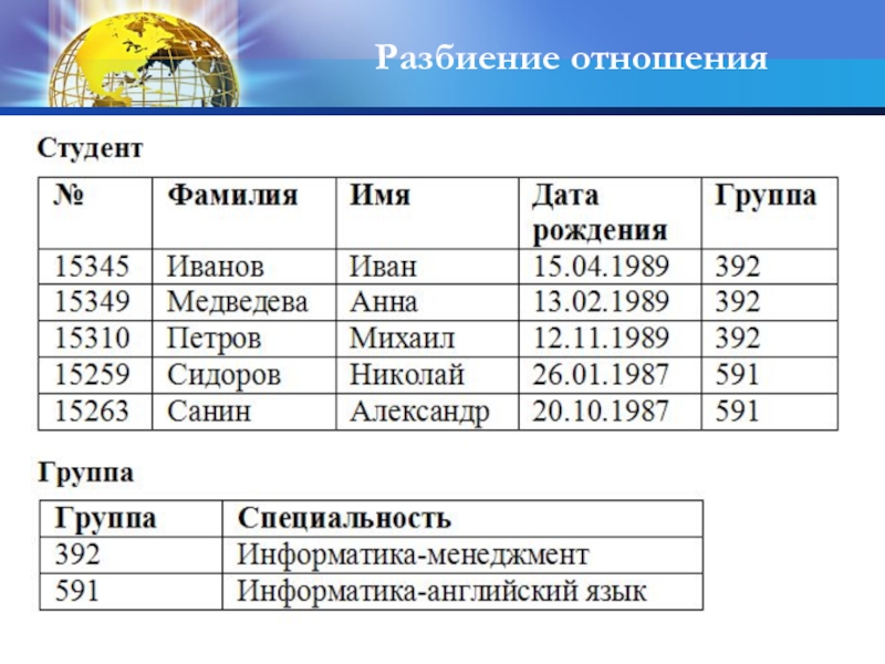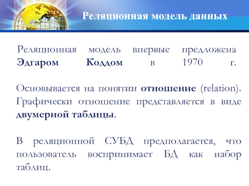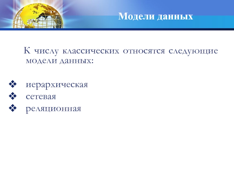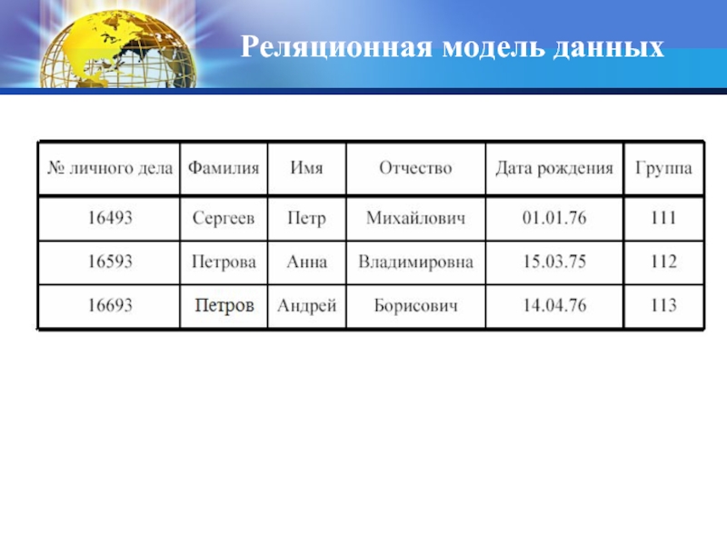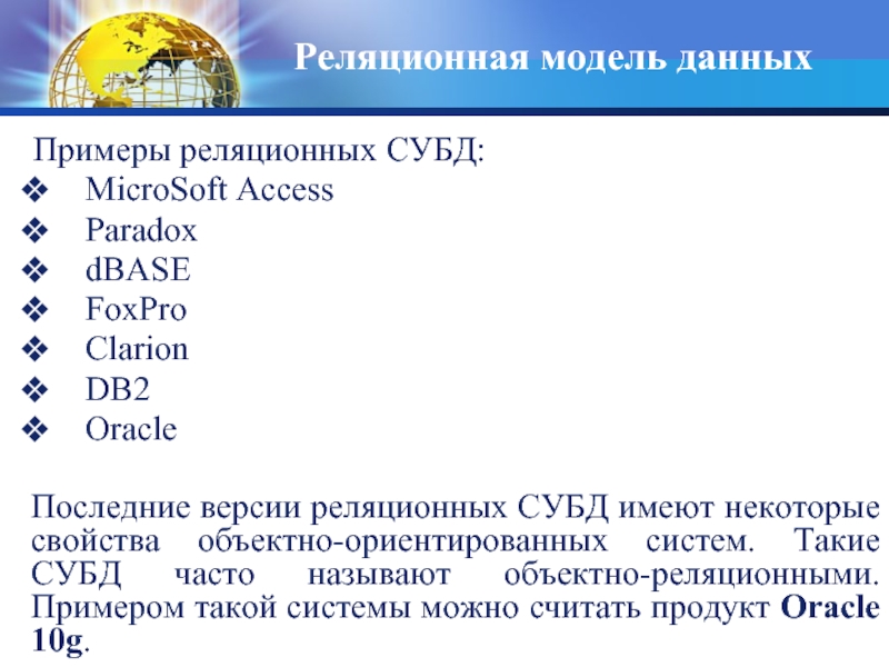 Реляционные (MS Access, Paradox, Interbase, FireBird, MySQL, DB2, Oracle, Ingres)