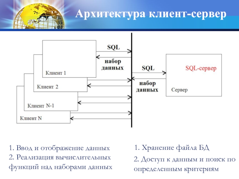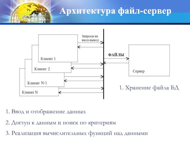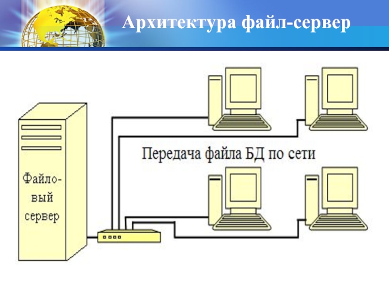 мэйнфреймом (доступ с помощью терминалов) или файловым сервером локальной сети.