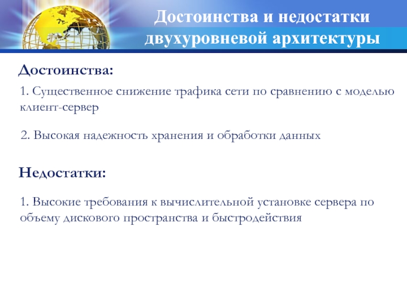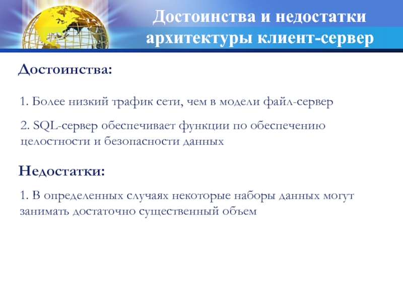 Слайд 191. Более низкий трафик сети, чем в модели файл-сервер