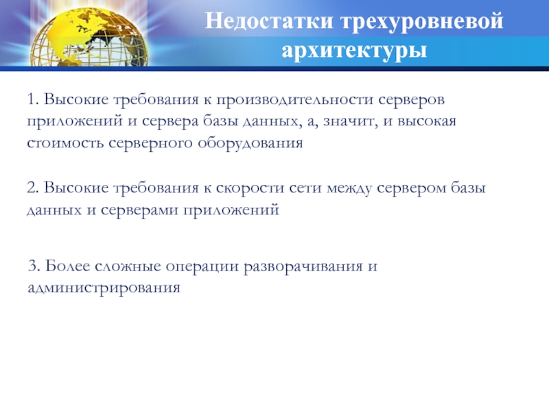 1. Высокие требования к вычислительной установке сервера по объему дискового пространства и быстродействия