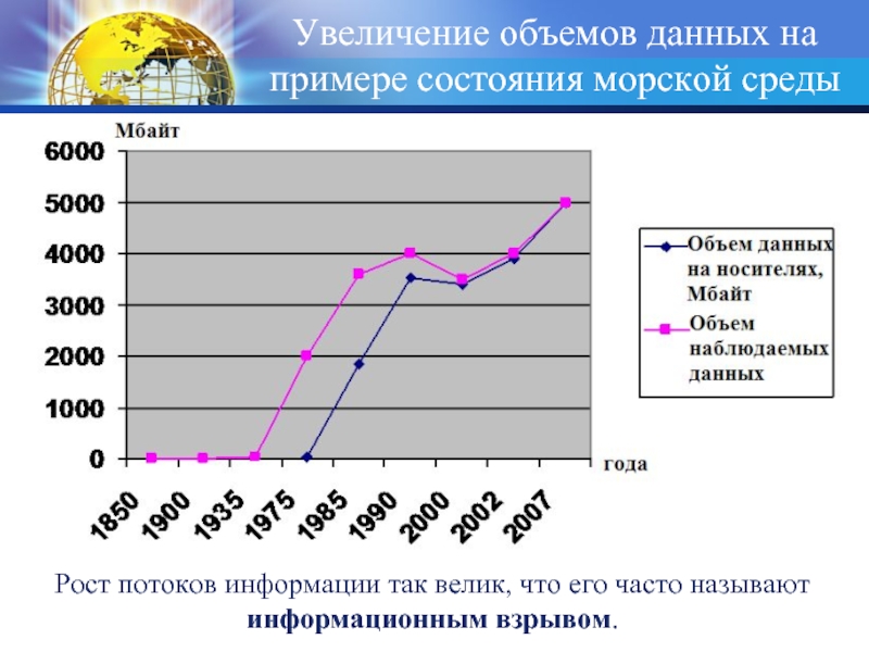 Слайд 4Увеличение объемов данных на примере состояния морской среды