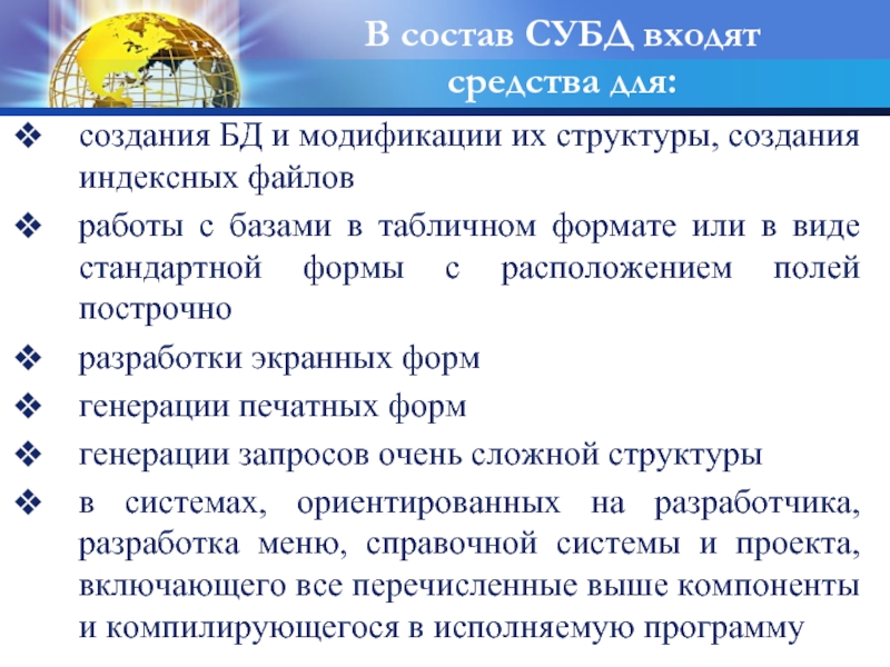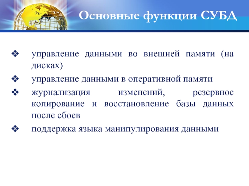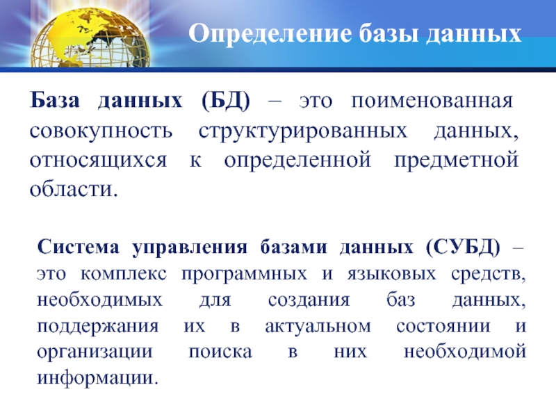 Система управления базами данных (СУБД) – это комплекс программных и языковых средств, необходимых для создания баз данных, поддержания их в актуальном состоянии и организации поиска в них необходимой информации.