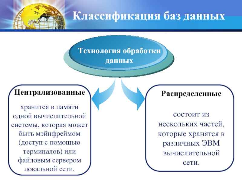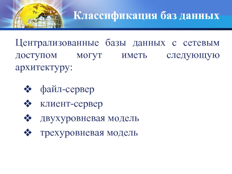 Централизованные базы данных с сетевым доступом могут иметь следующую