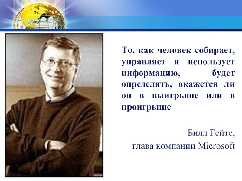 Слайд 3То, как человек собирает, управляет и использует информацию, будет определять, окажется