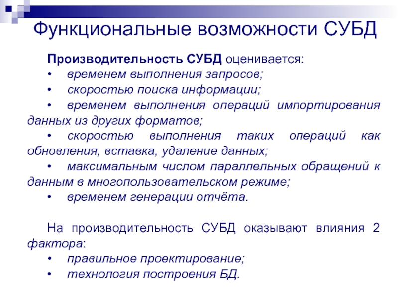 Такие СУБД обладают средствами настройки на работу с конкретной базой данных. Им присущи развитые функциональные возможности, функциональная избыточность.
