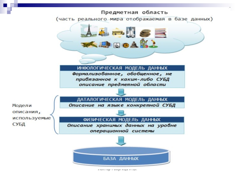 иерархические, сетевые, реляционные; объектно-ориентированные СУБД.
