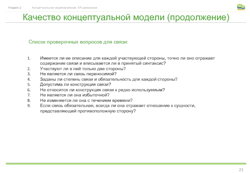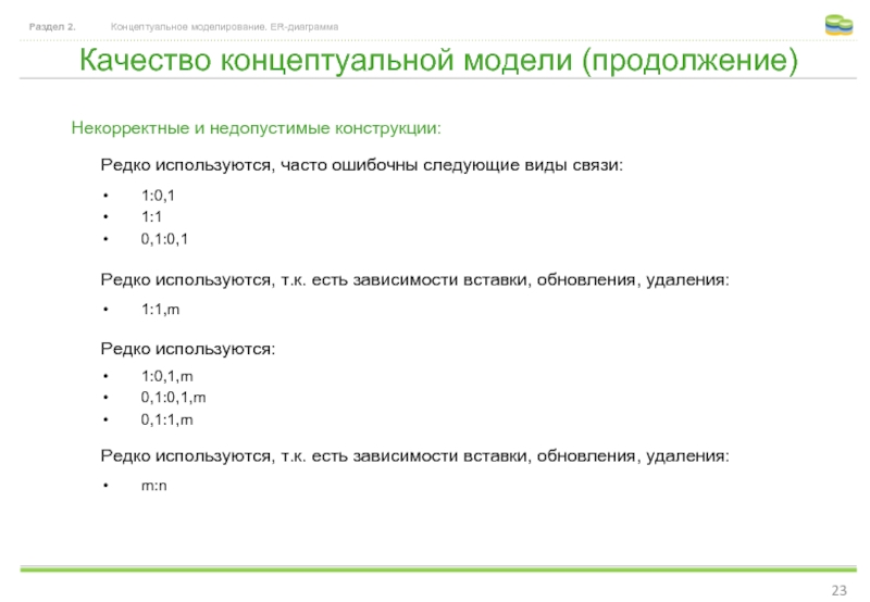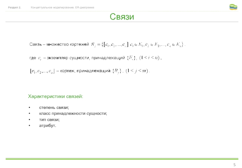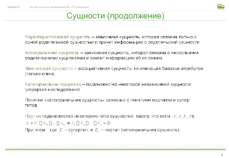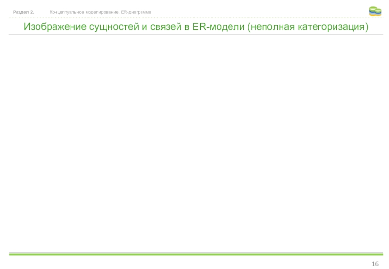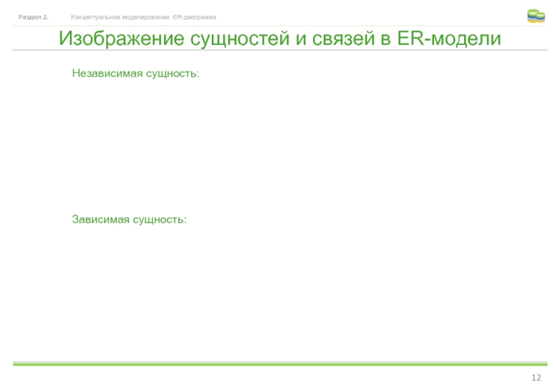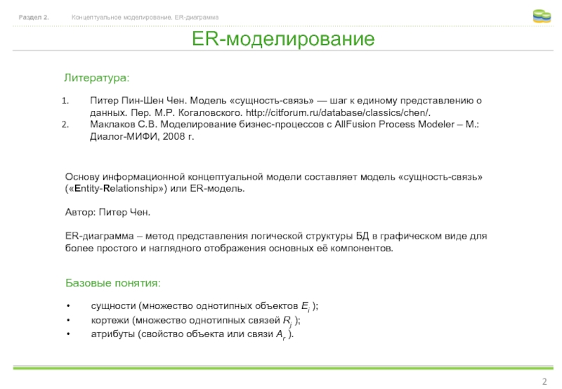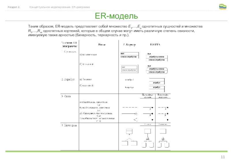 Основу информационной концептуальной модели составляет модель «сущность-связь» («Entity-Relationship») или ER-модель.