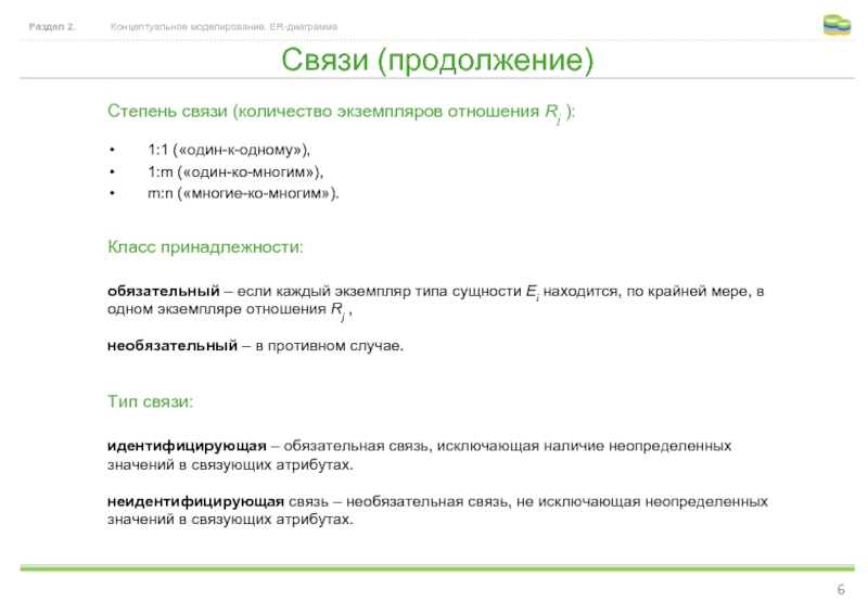 идентифицирующая – обязательная связь, исключающая наличие неопределенных значений в связующих атрибутах.