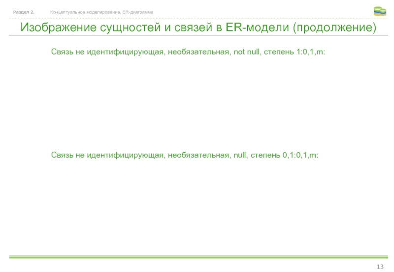 Связь не идентифицирующая, необязательная, null, степень 0,1:0,1,m: