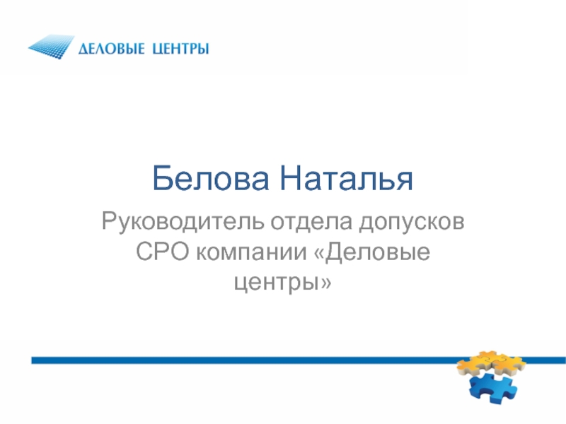 Белова Наталья Руководитель отдела допусков СРО компании Деловые центры презентация