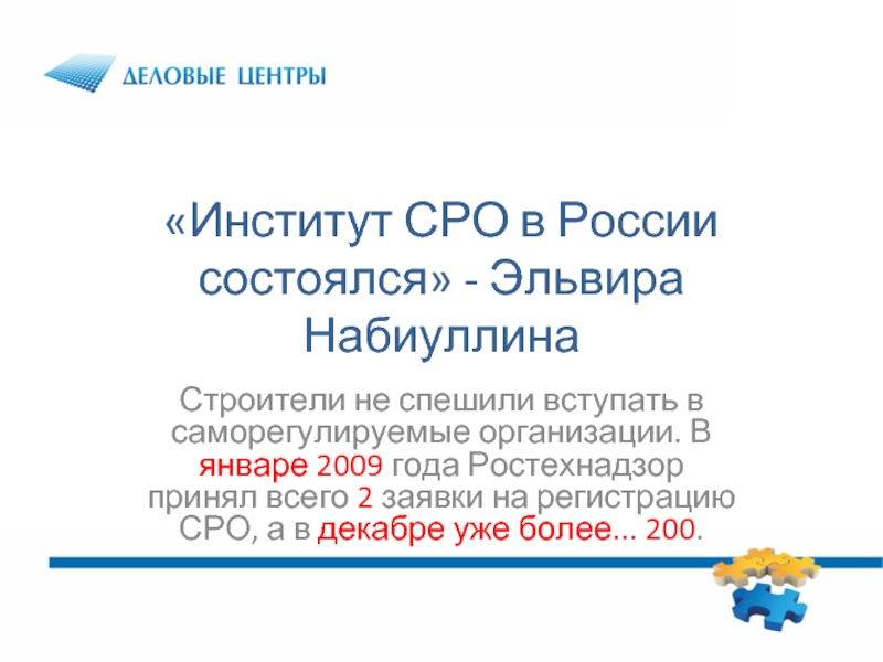 Слайд 3«Институт СРО в России состоялся» - Эльвира Набиуллина