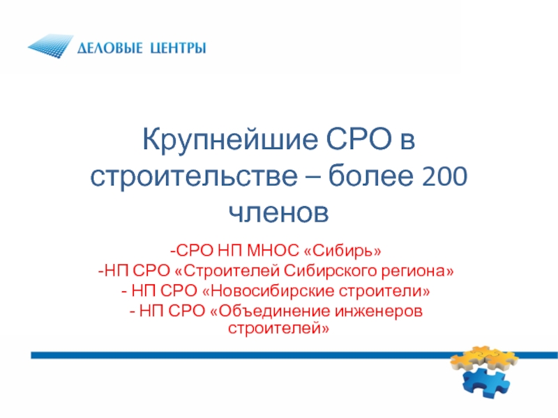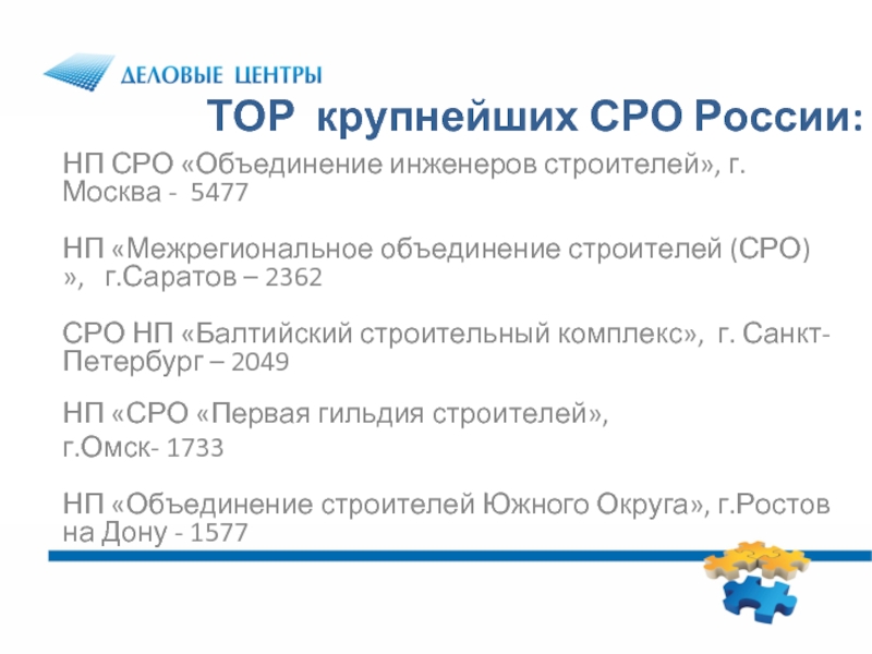 Слайд 18Крупнейшие СРО в строительстве – более 200 членов