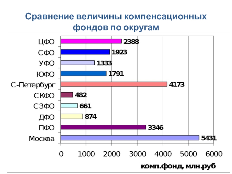 Слайд 12Сравнение величины компенсационных фондов по округам