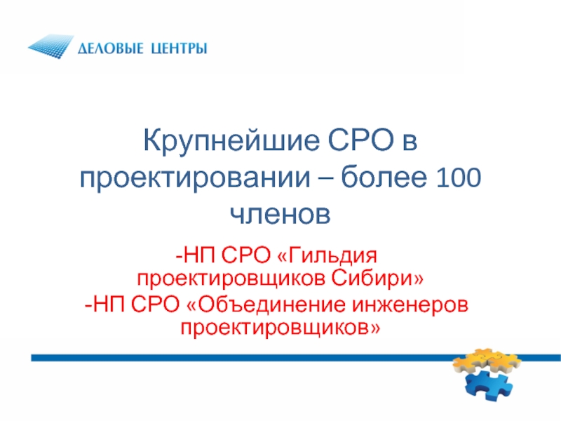 Слайд 19Крупнейшие СРО в проектировании – более 100 членов