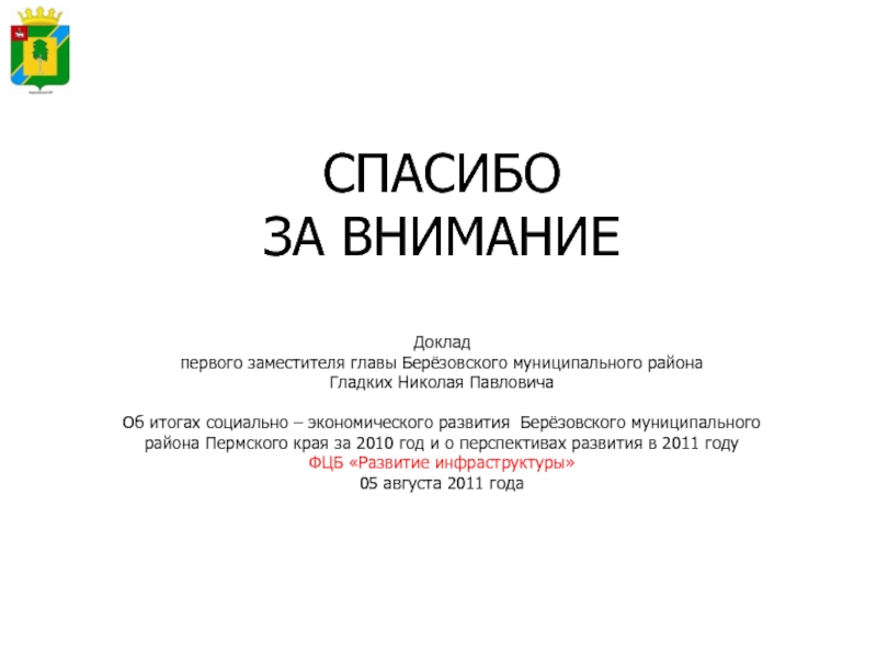 Докладчик: Гладких Николай Павлович, первый заместитель главы района, начальник МБУ «Управление ресурсами и развития инфраструктуры администрации района»