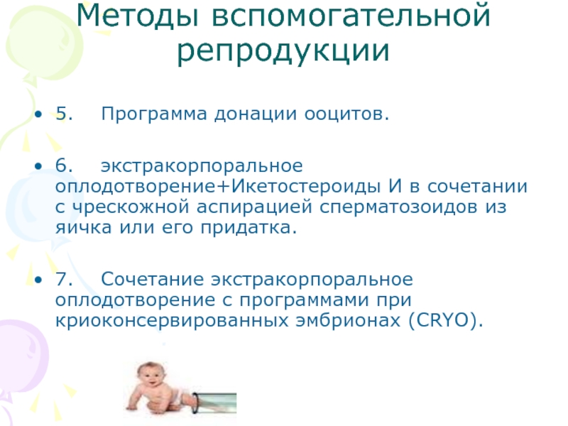 7. Сочетание экстракорпоральное оплодотворение с программами при криоконсервированных эмбрионах (CRYO).