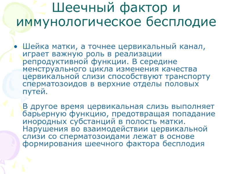 Слайд 23Шеечный фактор и иммунологическое бесплодие