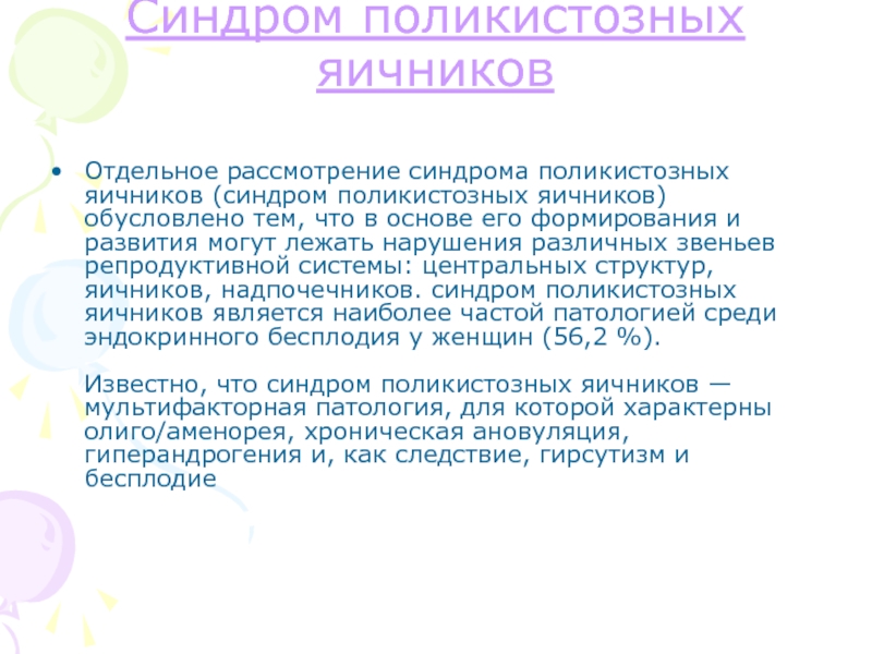 Отдельное рассмотрение синдрома поликистозных яичников (синдром поликистозных яичников) обусловлено