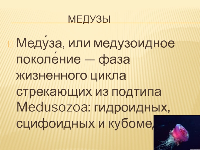 Меду́за, или медузоидное поколе́ние — фаза жизненного цикла стрекающих из подтипа Medusozoa: гидроидных, сцифоидных и кубомедуз