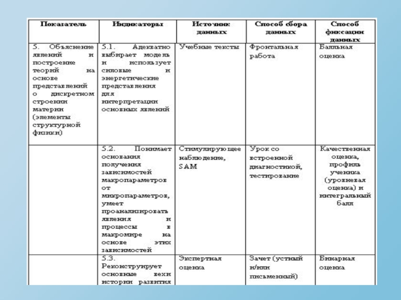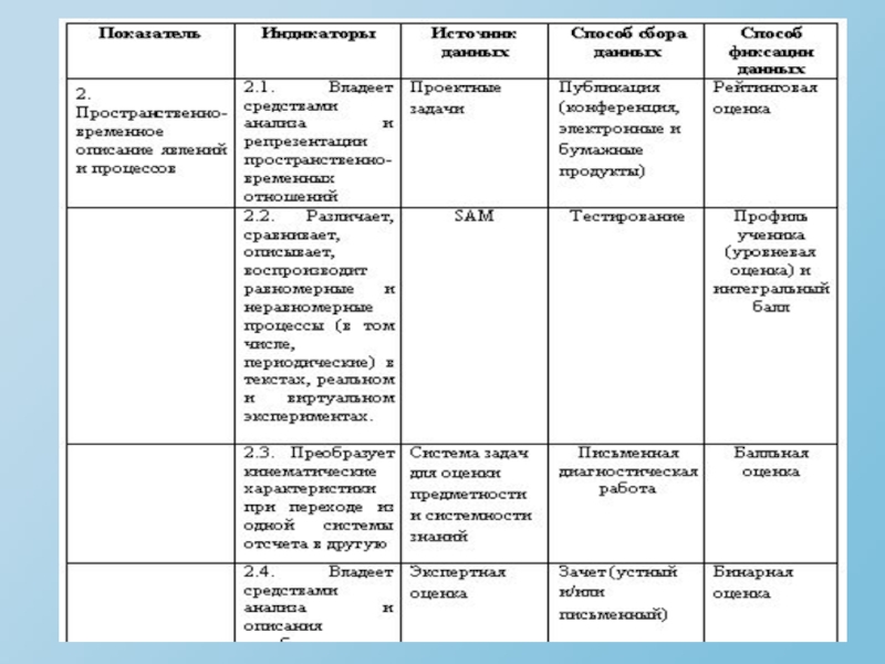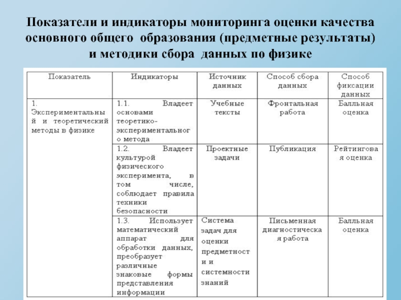 Слайд 16Показатели и индикаторы мониторинга оценки качества основного общего образования (предметные результаты)