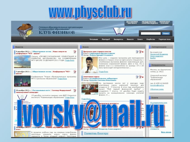 Слайд 44Адрес Клуба физиков: http://physclub.ru