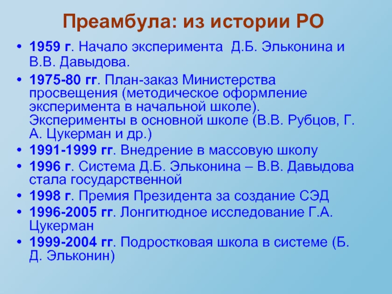 Слайд 341959 г. Начало эксперимента Д.Б. Эльконина и В.В. Давыдова.