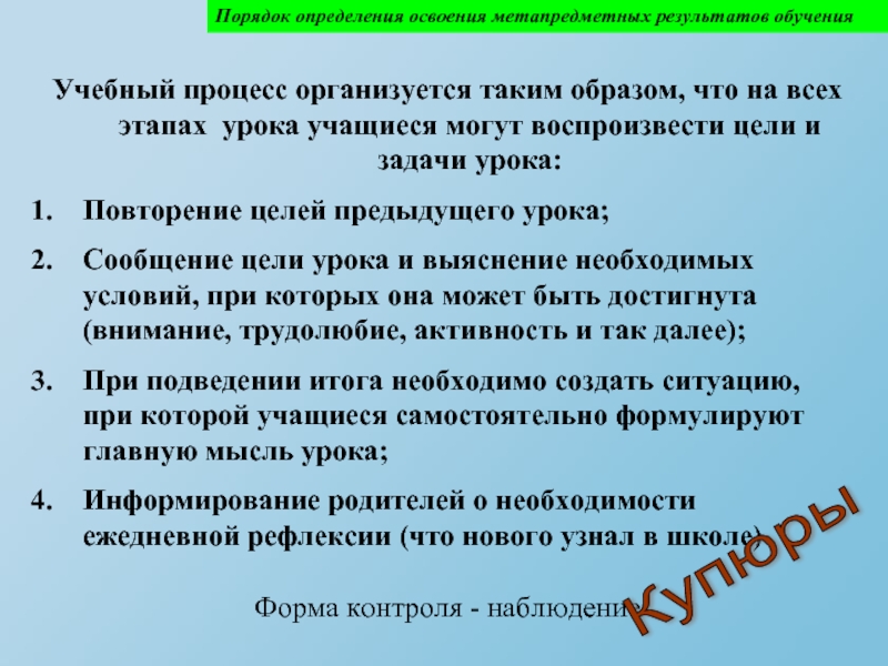 Слайд 5Порядок определения освоения метапредметных результатов обучения