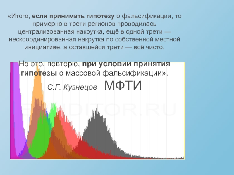 Слайд 11«Итого, если принимать гипотезу о фальсификации, то примерно в трети регионов