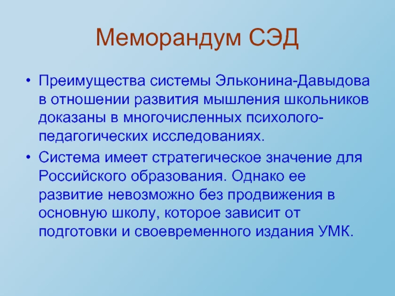 Преимущества системы Эльконина-Давыдова в отношении развития мышления школьников доказаны в