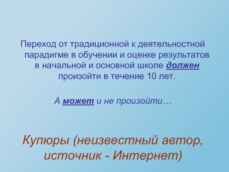 в обучении и оценке результатов в начальной и основной школе должен произойти в течение 10 лет.