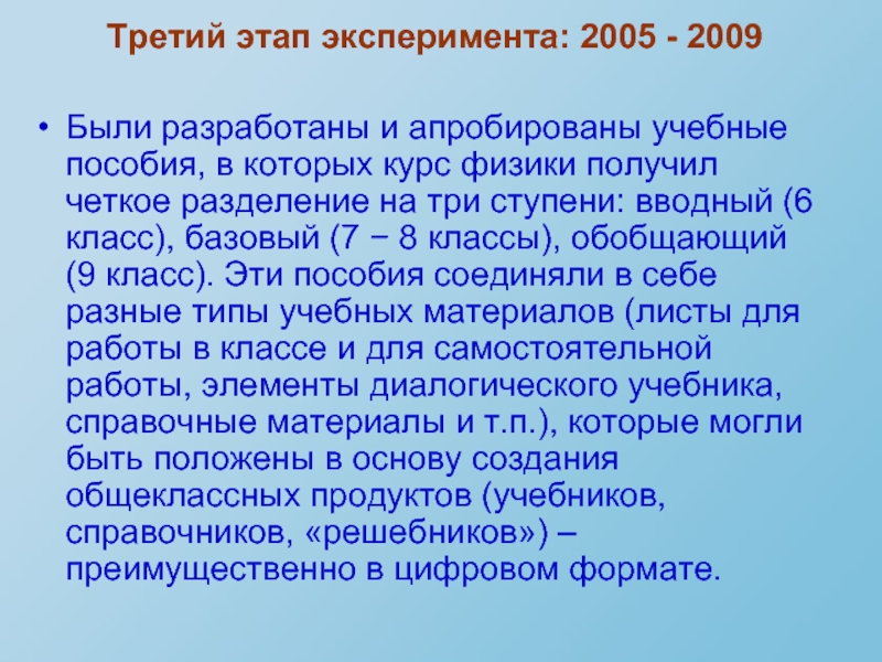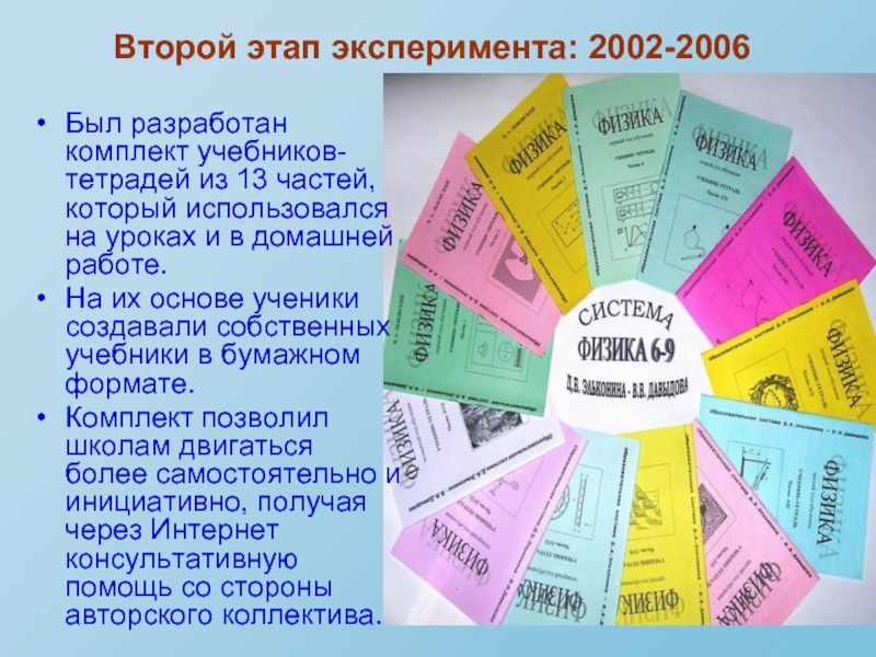 Слайд 42Все эти годы эксперимент шел в «закрытом» варианте, т.е. учебные пособия