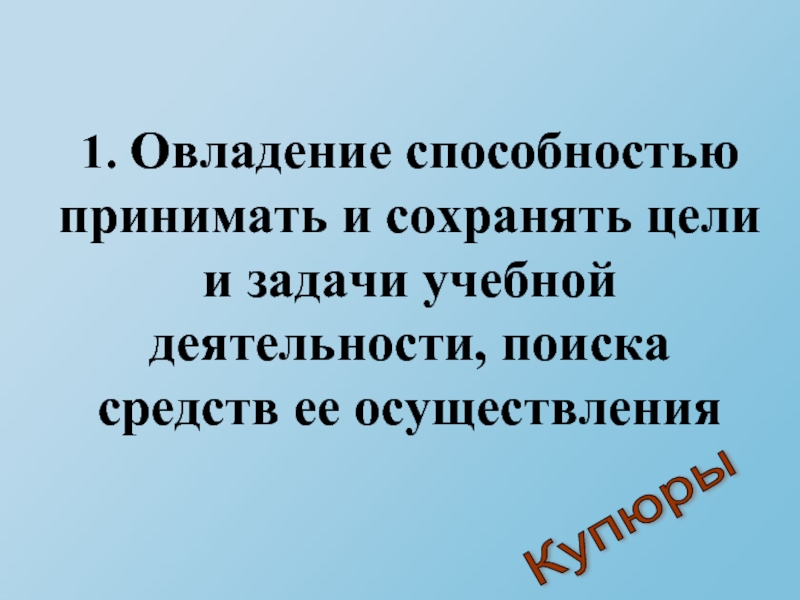 Слайд 41. Овладение способностью принимать и сохранять цели и задачи учебной деятельности,