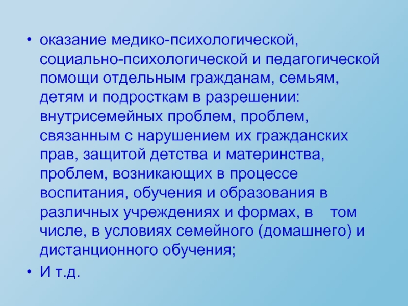 Слайд 51оказание медико-психологической, социально-психологической и педагогической помощи отдельным гражданам, семьям, детям и