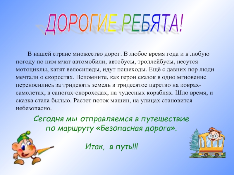 Сегодня мы отправляемся в путешествие по маршруту «Безопасная дорога».