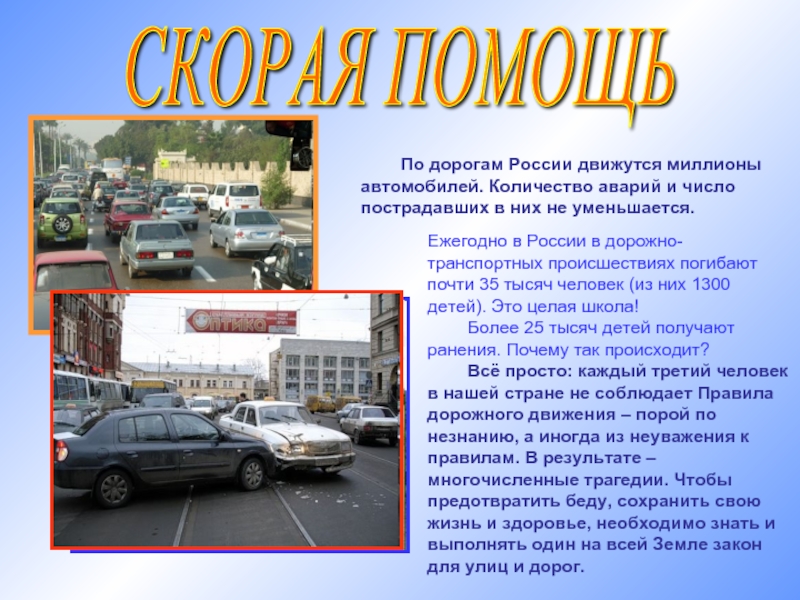 Ежегодно в России в дорожно-транспортных происшествиях погибают почти 35 тысяч человек (из них 1300 детей). Это целая школа!