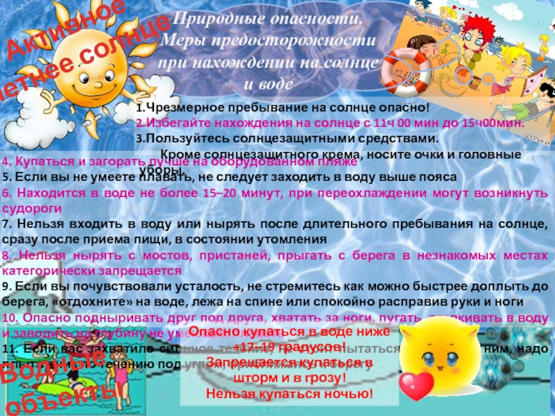 Природные опасности. Меры предосторожности при нахождении на солнце и воде