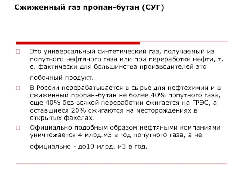 Слайд 33Сжиженный газ пропан-бутан (СУГ)