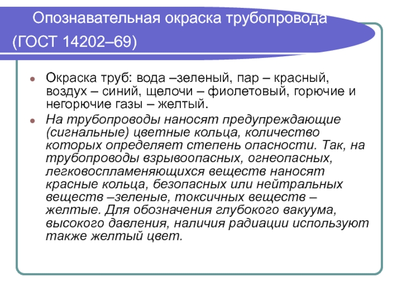 Слайд 4 Опознавательная окраска трубопровода (ГОСТ 14202–69)