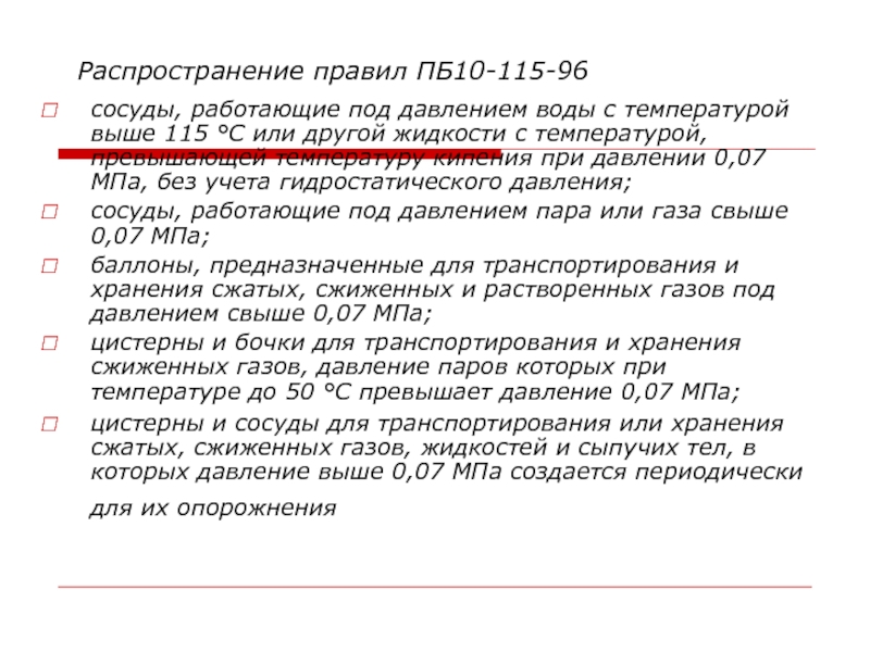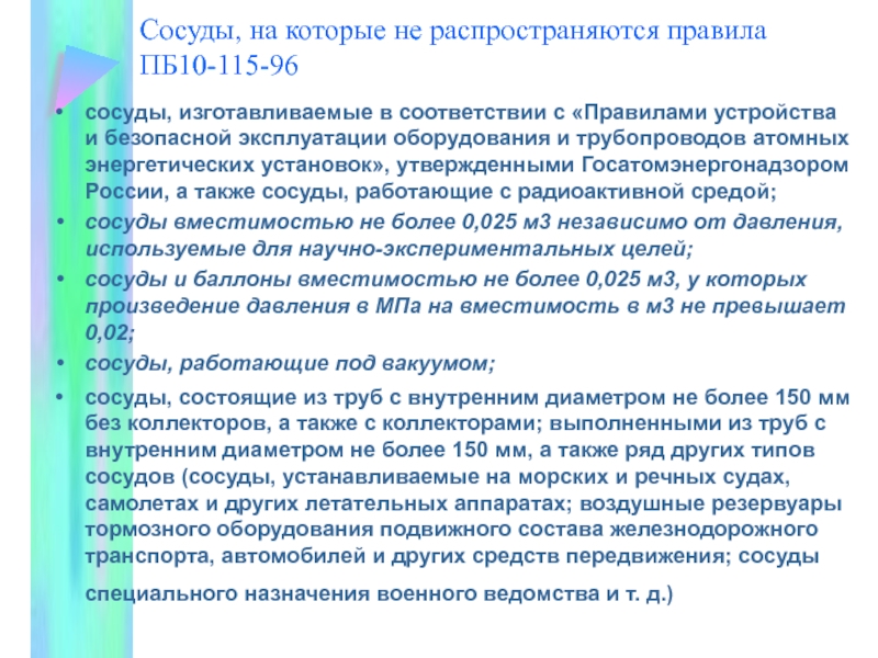 Слайд 9Сосуды, на которые не распространяются правила ПБ10-115-96