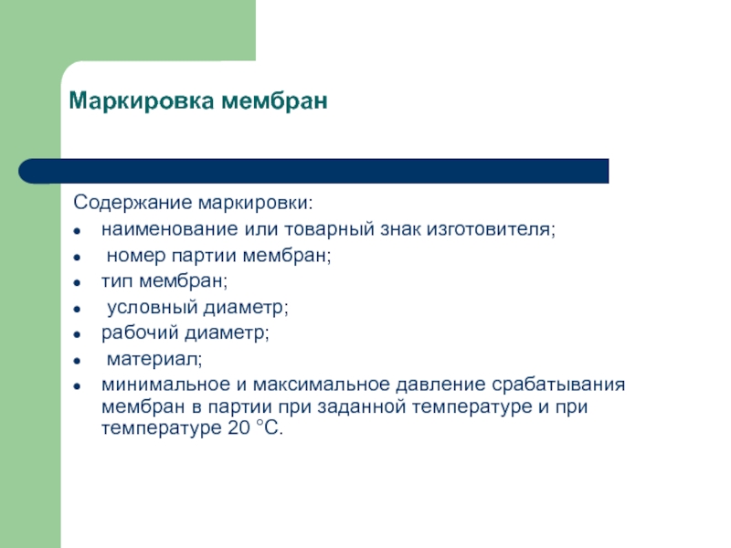 минимальное и максимальное давление срабатывания мембран в партии при заданной температуре и при температуре 20 °С.