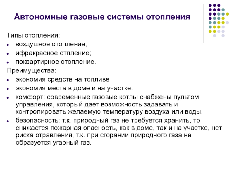 безопасность: т.к. природный газ не требуется хранить, то снижается пожарная опасность, как в доме, так и на участке, нет риска отравления, т.к. при сгорании природного газа не образуется угарный газ.